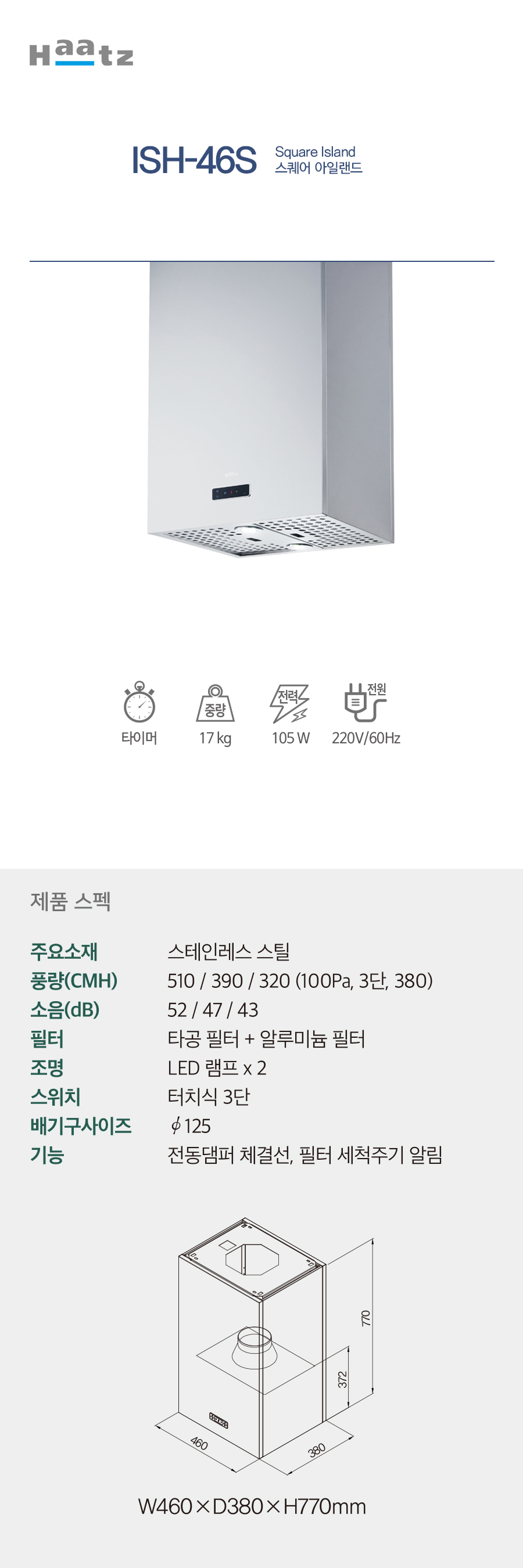 하츠 주방후드 스퀘어 (ISH-46S)