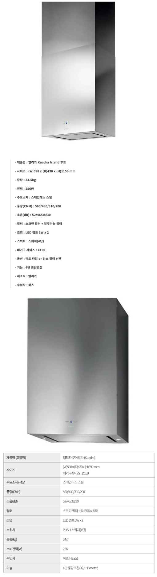 위덱(BS) - 하츠 주방후드 엘리카 쿠아드라 (KUADRA) 벽부착형 (CPMB-90BL)